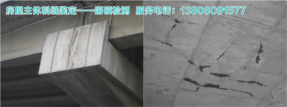 以上裂缝引起的破坏形式属于塑性破坏。其特点是事先有明显的变形和裂缝预兆,出现裂缝后人们可以及时采取措施予以补救,危险性相对稍小。此种裂缝是否影响结构的安全,应根据裂缝的位置、长度、深度以及发展情况而定。如果裂缝已趋于稳定,且最大裂缝未超过规定的容许值,则属于允许出现的裂缝,可不必加固。例如某车管所办公用房,半层地下室,地上6层,框架结构承重,现浇混凝土梁、板楼(屋)盖, 1996年竣工,2008年8月甲方发现一层部分框架梁(地下室顶)出现不同程度的裂缝,要求鉴定,同时委托查勘四层结构状况,该层局部曾经作档案室(现已取消)使用,明显增加了楼面荷载。根据现场调查、检测,一层框架梁裂缝局部存在,裂缝的特点:基本出现在梁底跨中附近粉刷层,垂直于梁跨,最多的梁底出现三条,个别梁侧面粉刷层也有不规则裂缝,最大裂缝宽度为0.38mm,凿除裂缝部位粉刷层后,发现粉刷层厚度最大为70mm,且分两次粉刷,有明显接缝痕迹,未发现结构层裂缝;四层框架梁粉刷层裂缝个别存在,且肉眼不易察觉。根据原设计施工要求及房屋使用情况,对有关承重构件复核,经过综合分析,判明为温度应力裂缝,属非结构性裂缝。该裂缝未危及房屋结构安全。 如裂缝出现于受弯构件下列部位:受压区、斜截面、冲切面等,以及后张预应力构件端部局压部位等皆属于结构性裂缝脆性破坏的特点:事先没有明显的预兆而突然发生,一旦出现裂缝,对结构强度影响很大,是结构破坏的征兆。